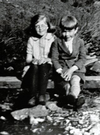 a close-up extracted from the same photograph of Lloyd and Freda at the ford and "bridge" over the river