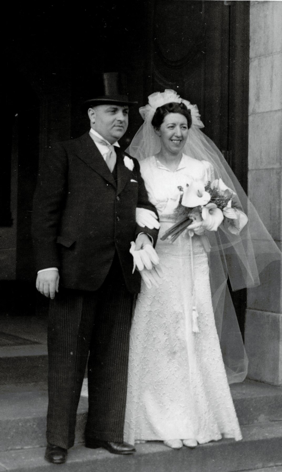 Morris Segal and Esther - wedding photograph. On the back: "To Sophie and Louis from Morris and Esther with love March 19/44". Not the same date as on morriswdg02.