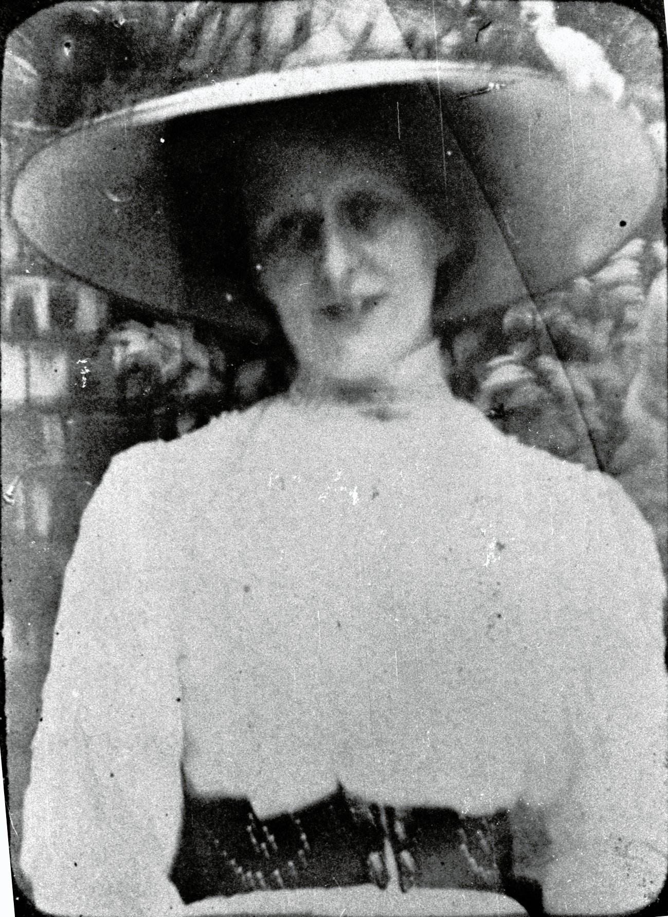 a woman wearing an extravagantly large hat (from the Jones/Morris photographs)