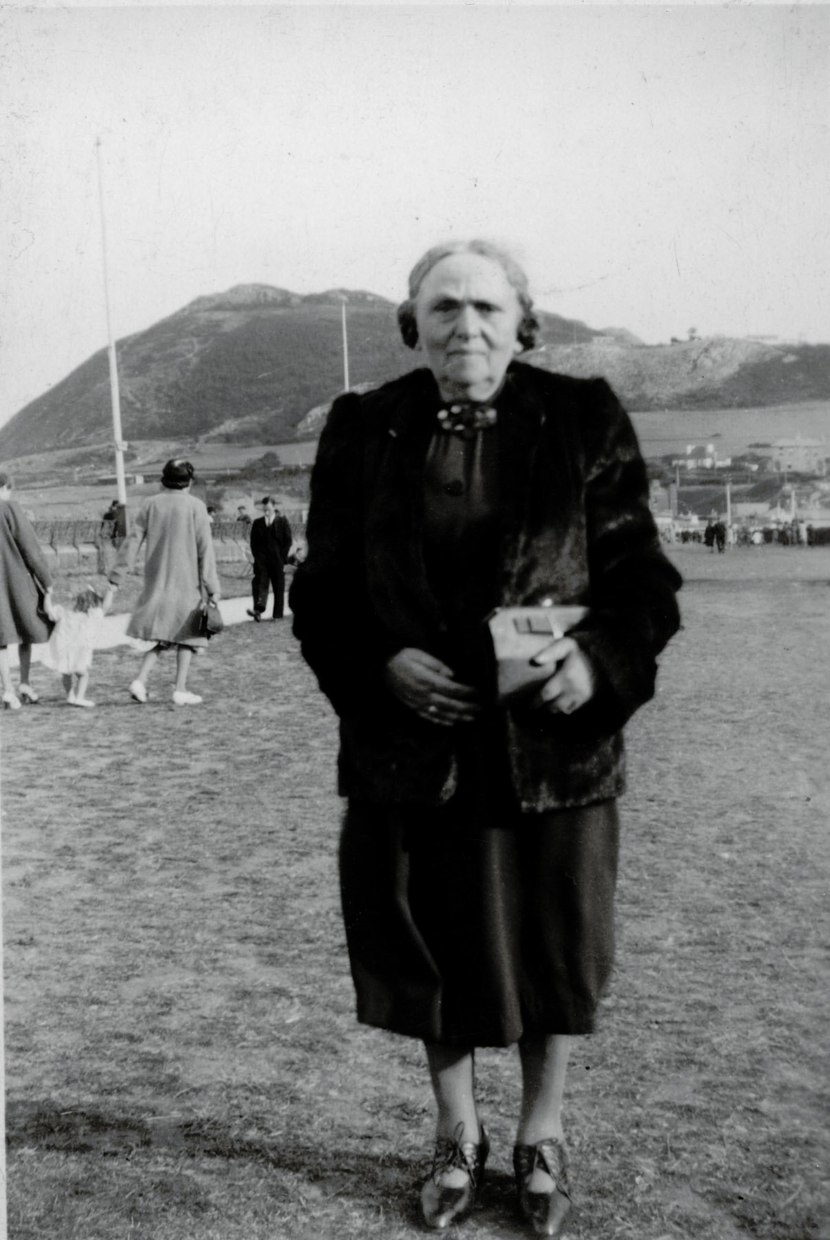Yetta Segal. Note on the back: Mother at Bray Aug 1941. Full image and a portrait detail from it.