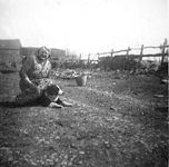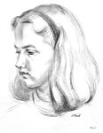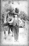 | Gwyneth Jones, detail from school photograph (see below) | Freda Jones, detail from school photograph (see below) | Lloyd and Bess, and another horse with a cart | Pencil portrait of Bob in uniform | |