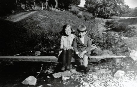 Lloyd and Freda at Llanerch - the ford and "bridge" over the river Morda.