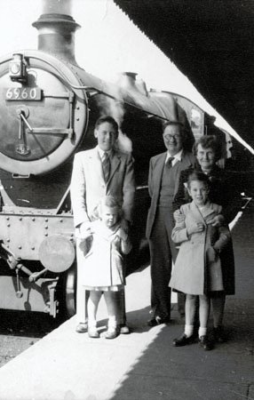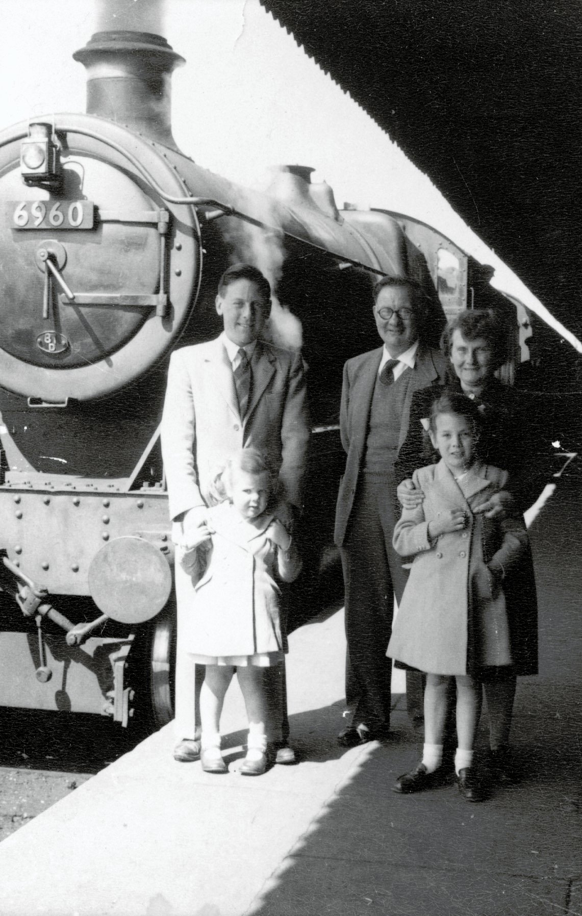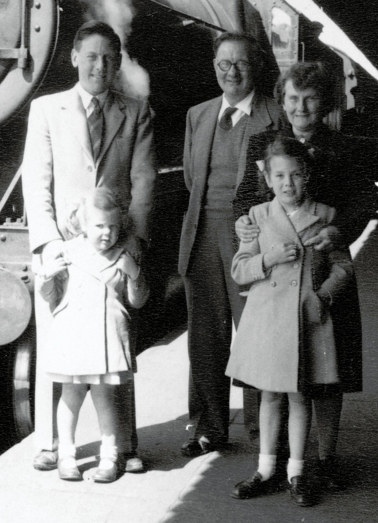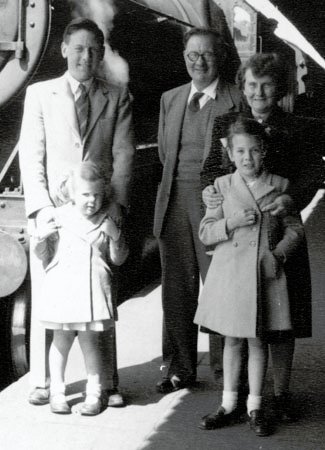 Albert and Winifred Downer, Sidney Downer, Susan and Cherry Downer at Oxford station, c.1953