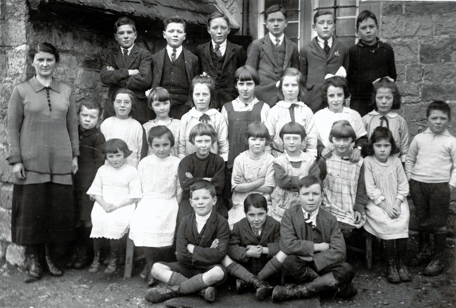 Rhydycroesau School Children January 1926 Mrs Robertson Headmistress Emlyn Ochor Albert Tangraig David Tyissa Tommy Cynynion Arthur Evans Randal Ridge R.T Cefnmaes Sally Bwlchdongau Gwyneth Maggie Tynewydd Maria Tyissa Mary Tynewydd Jane Tangraig Louisa Tynewydd Dot Tangraig Sara Ellin " Maud Tyissa Mary R'Ochor Sara Cynynion Freda Elsie Rhosddu Emrys Bains Richie R'Ochor Robert Allun Tangraig David Henblas Miss Morris Cefn Byrallt Gwyneth and Freda started School Apl 1925