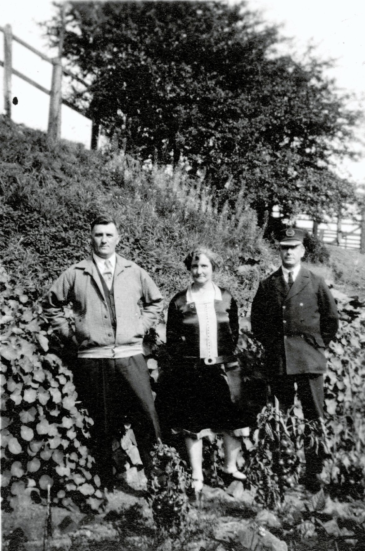 L to R: Uncle George, Auntie Annie, Uncle Joe. Taken when they visited Auntie Jinny and Uncle Joe at Somerton where he was stationmaster. On the back "Joe: J husband - station master at Somerton"